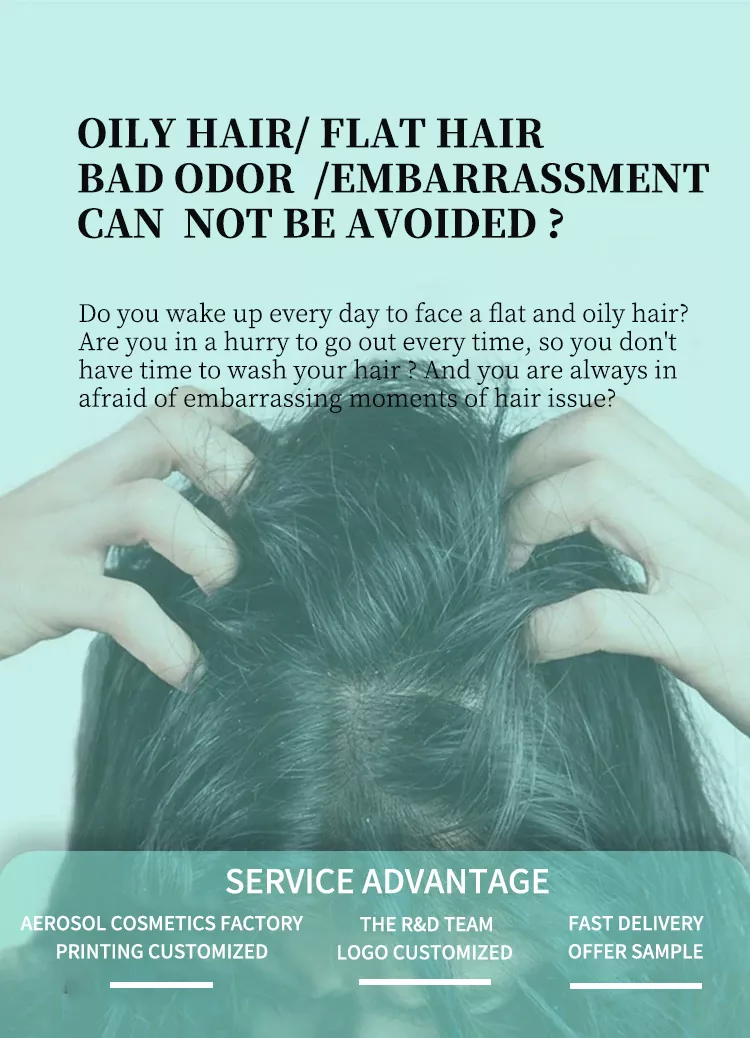 Spray de shampoo seco para limpeza com óleo e atualização instantânea
