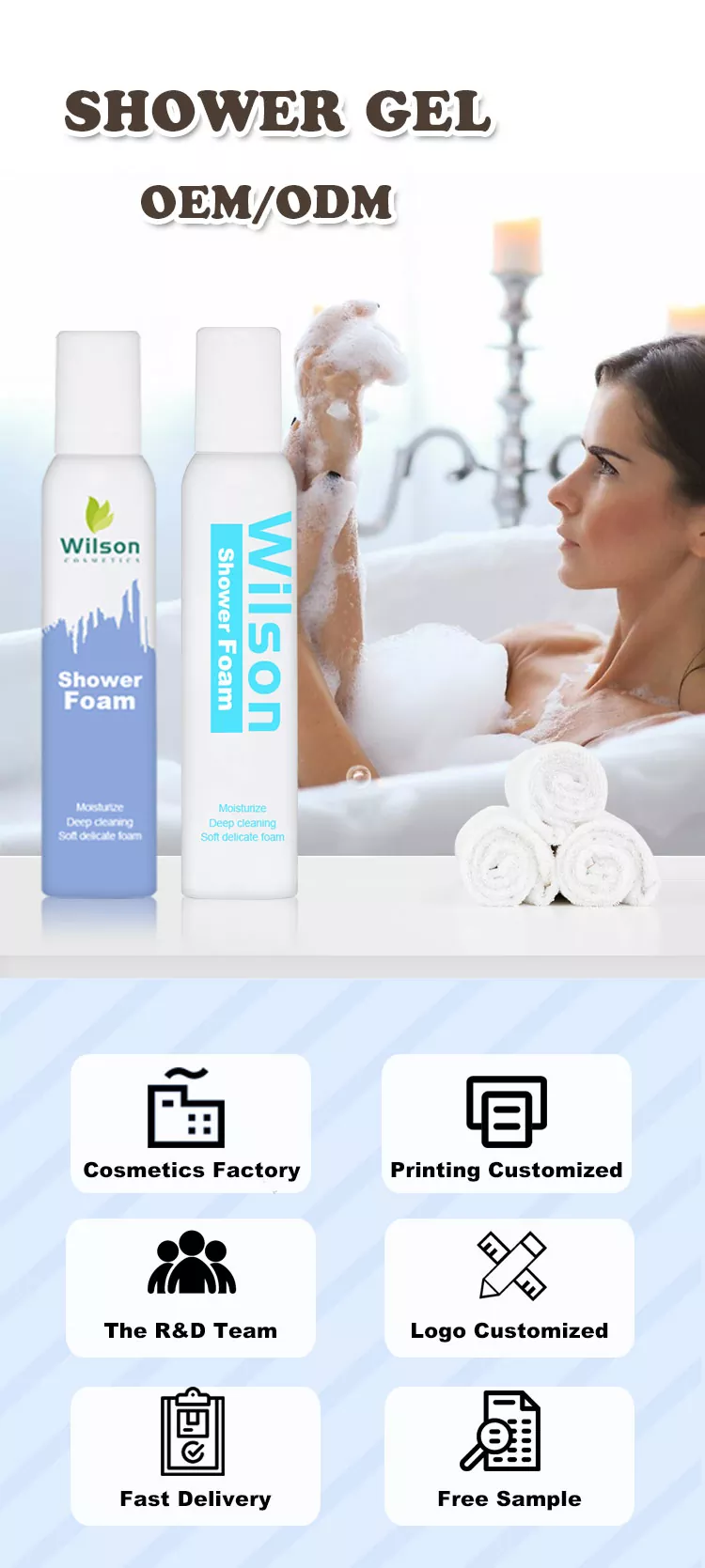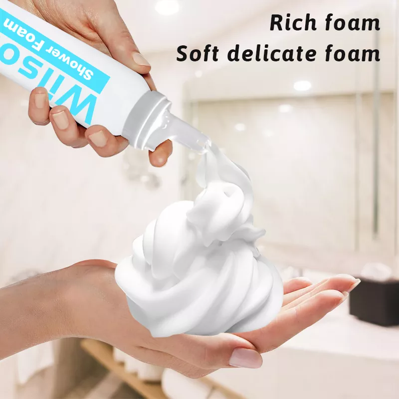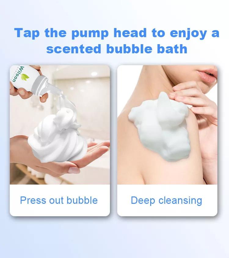 Esta espuma de banho hidratante Wilson Long-Lasting Bubbles é inicialmente espremida para fora do estado de gel, mas na palma da mão esfregar suavemente pode produzir uma espuma de leite muito densa também pode espumar no estado sem água, oh ~ textura dupla e pele limpa batem confortável.