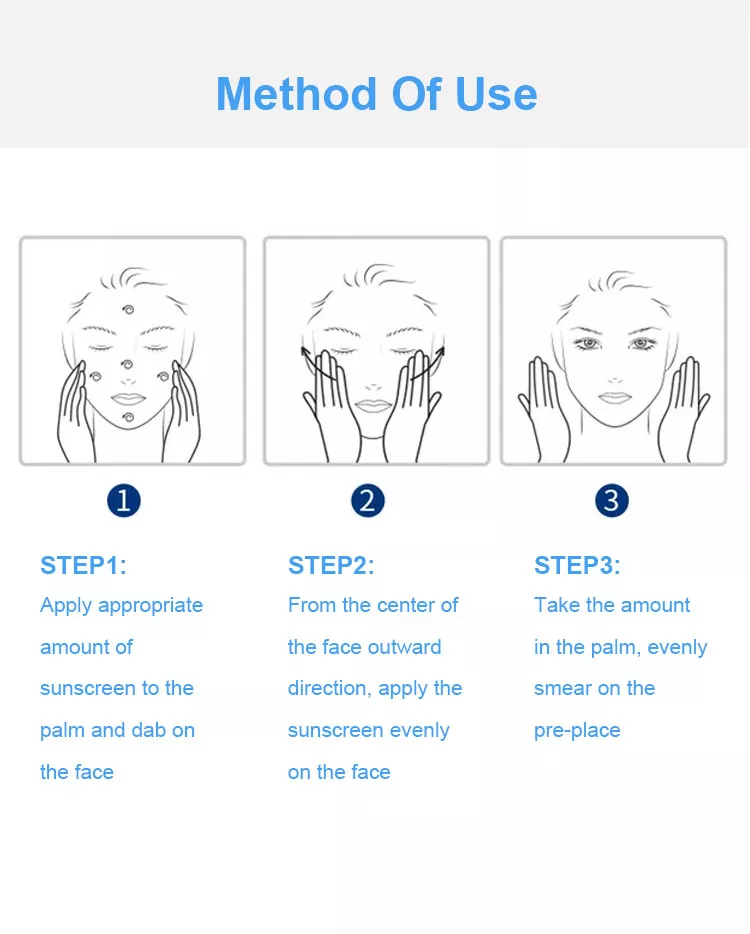 Ao usar protetor solar, deve-se ter cuidado para evitar a ingestão pelos olhos e pela boca; se acidentalmente entrar em contato com os olhos, lave imediatamente com água. Além disso, a maquiagem deve ser removida a tempo à noite para reduzir a carga sobre a pele.