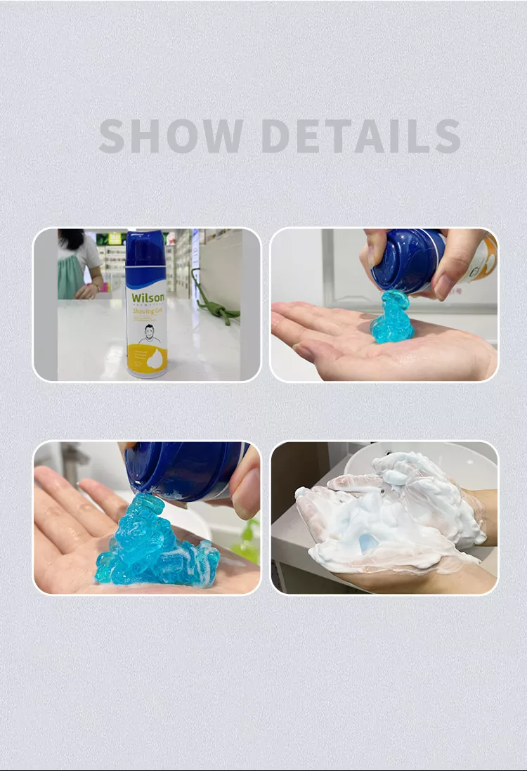 Wilson desliza hidratar o alívio de resfriamento zero gel de barbear quando a lâmina e o atrito da pele causarão alguns danos à pele do rosto, com tanta frequência usada em gel de barbear, a lubrificação do gel de barbear pode reduzir a lâmina e o atrito da pele, seus ingredientes antibacterianos para reparar a pele após a barbear um papel.